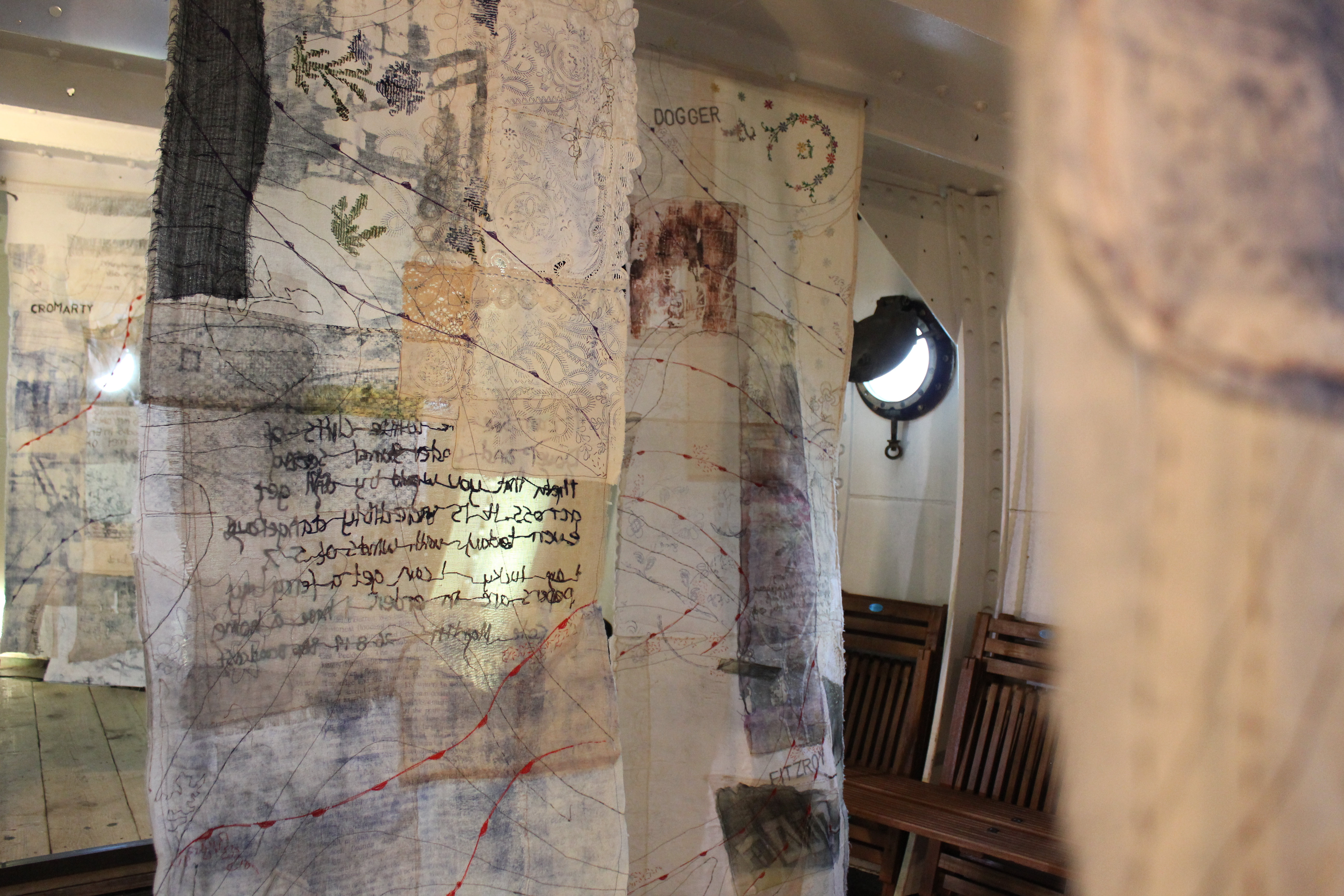 Place:The Shipping Forecast exhibition and collaboration marking the 100th anniversary of the first broadcast exhibition at Light Vessel 21 2025 and at Alexandra Palace- The Knitting and Stitching Show. 2024.